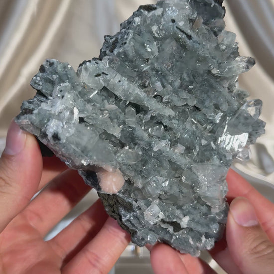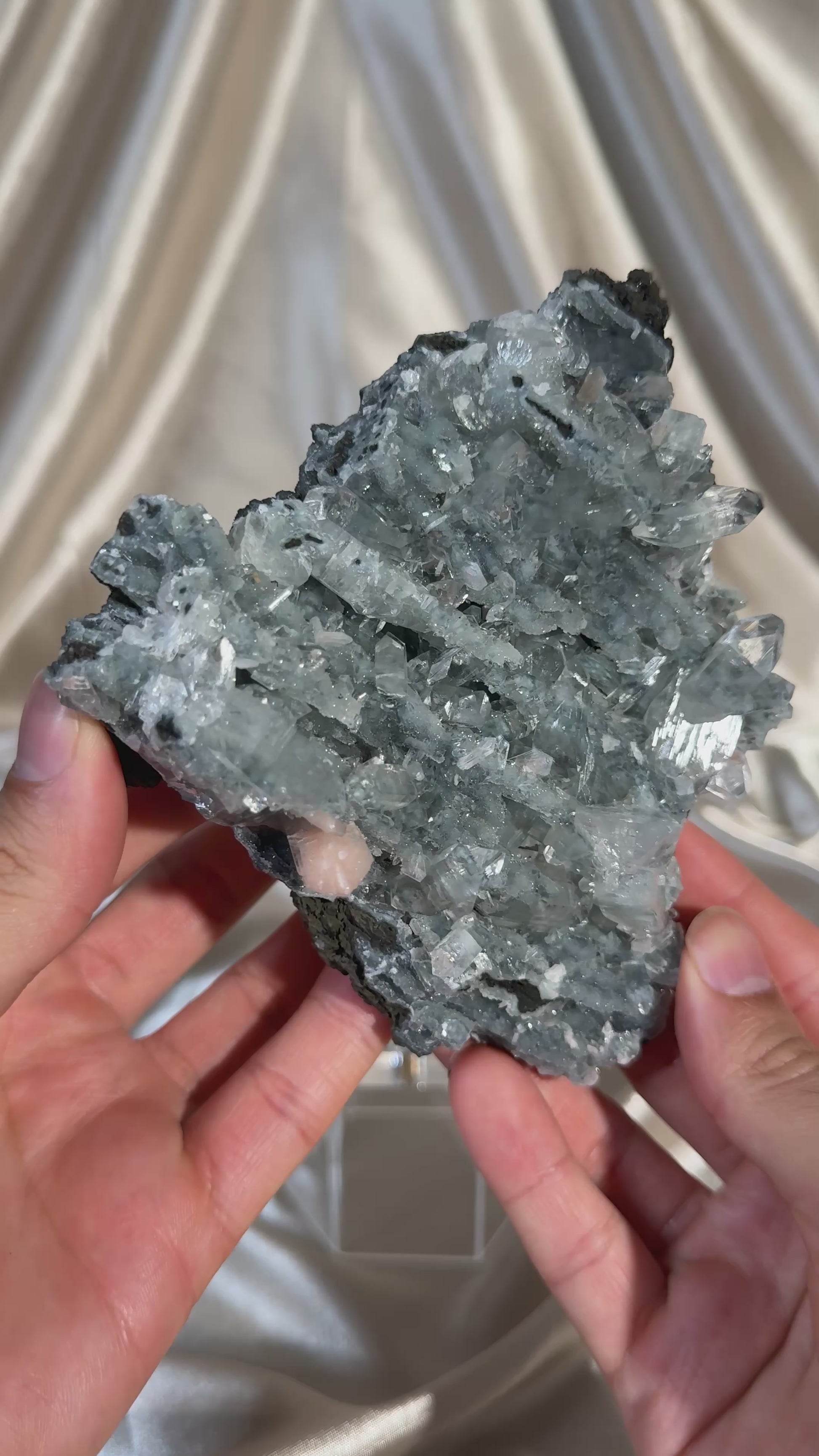 Please note: This piece has cleaved apophyllite crystal, meaning there is a small area of natural damage. It does not affect the overall beauty or structure of the specimen and is reflected in the price.
