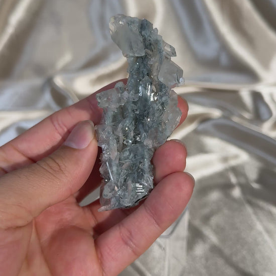 This stunning specimen features deep blue chalcedony stalactites with diamond apophyllite. Some include vibrant red heulandite and peach stilbite, making this a unique and colorful addition to any collection.