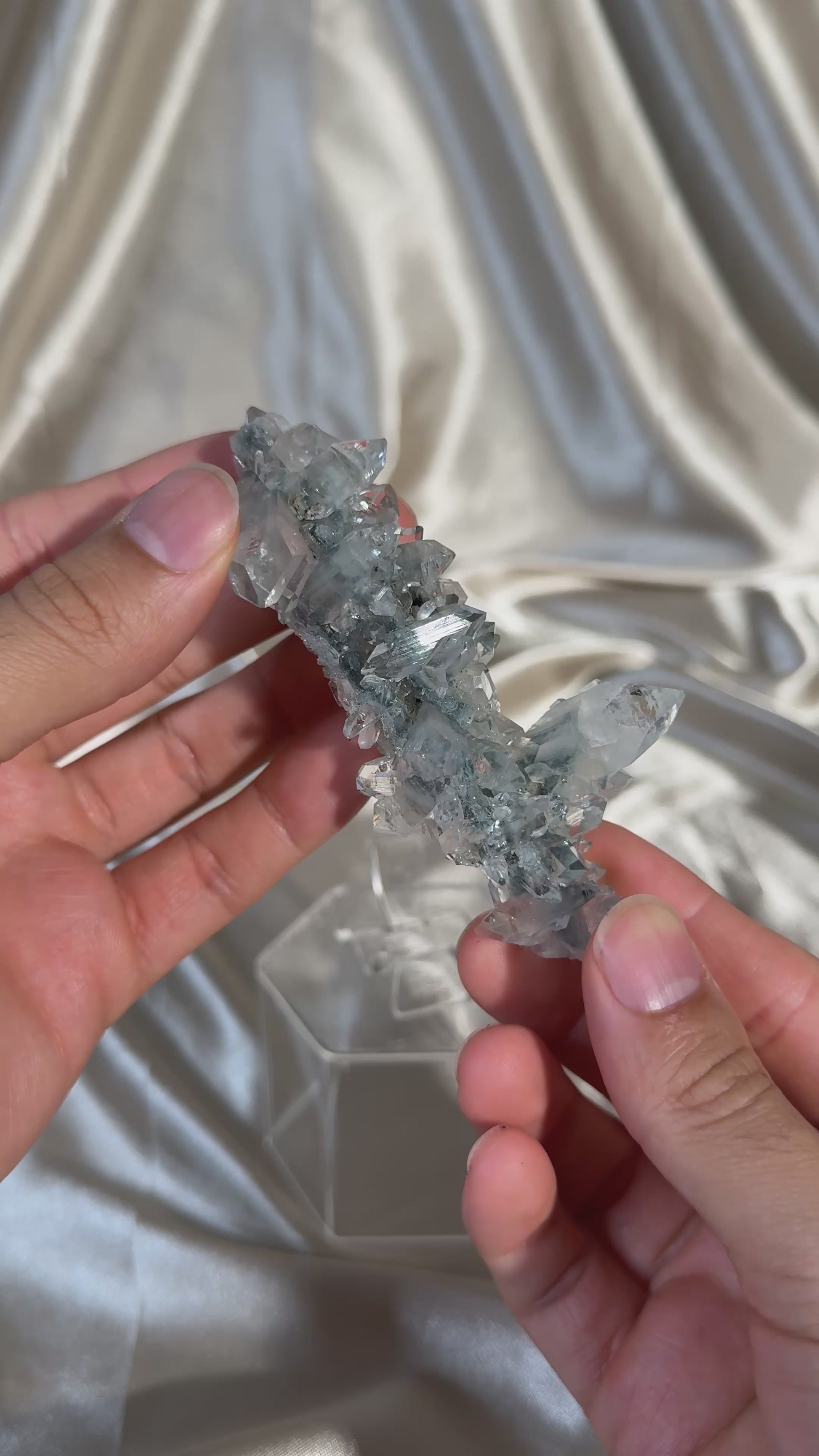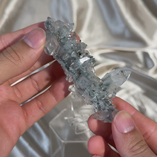 This stunning specimen features deep blue chalcedony stalactites with diamond apophyllite. Some include vibrant red heulandite and peach stilbite, making this a unique and colorful addition to any collection.