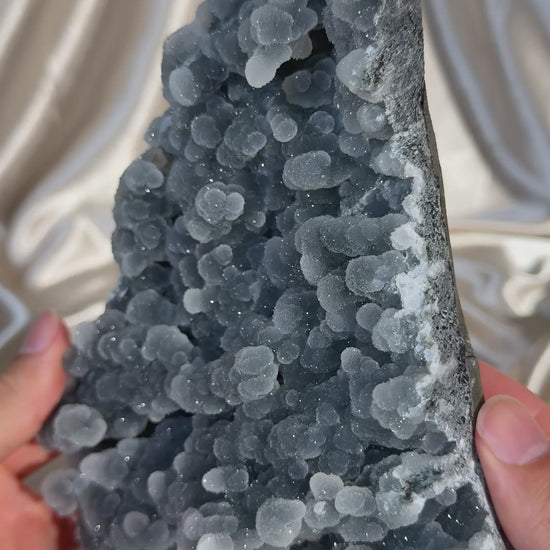 An extraordinary specimen featuring intricate black chalcedony formations with a unique, frosted texture. The dark, velvety surfaces and structure make this a standout piece for any moody mineral collection or display.
