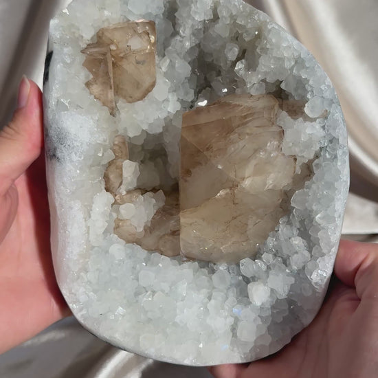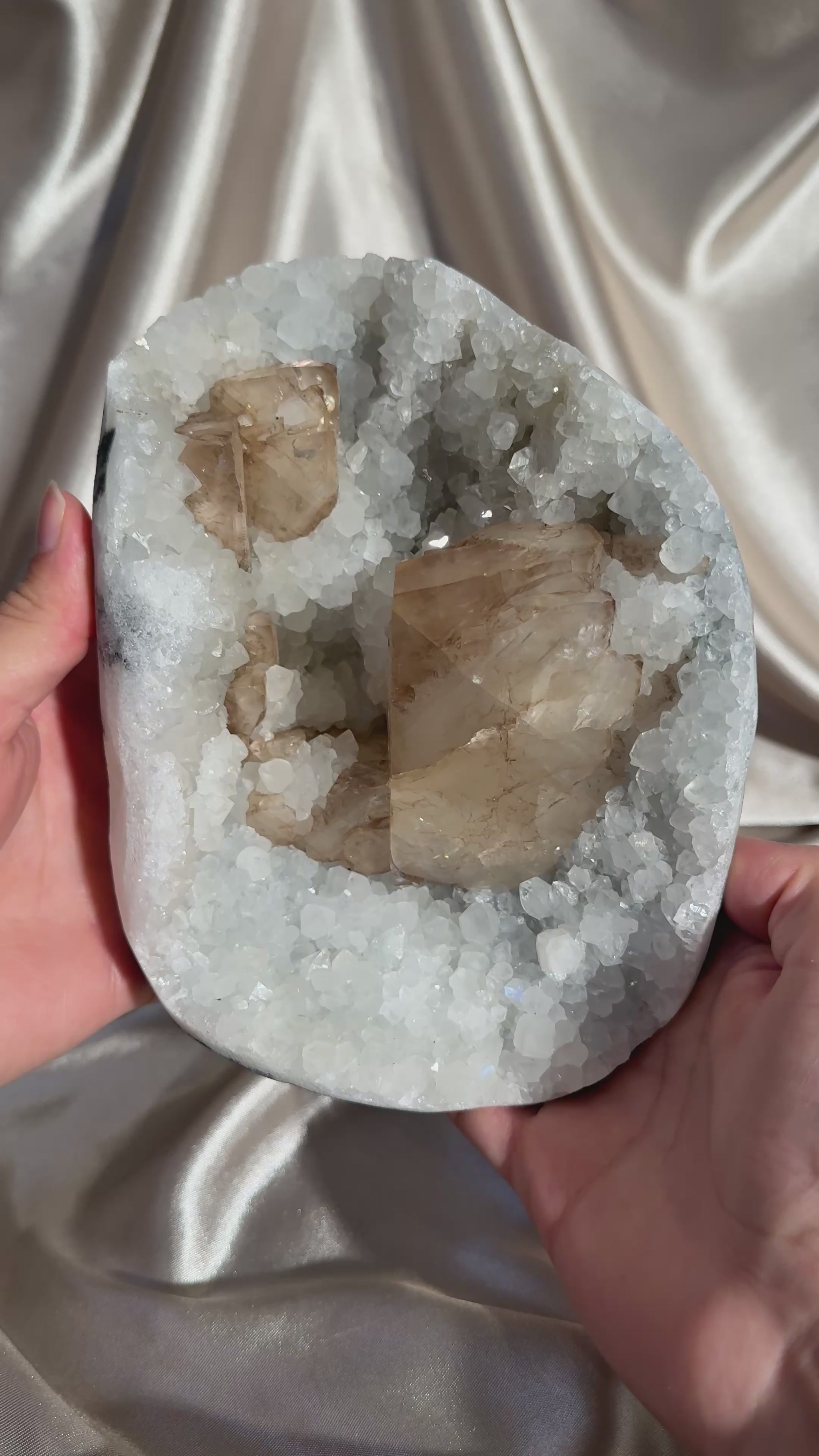 Sourced from the Jalgaon District, a region known for producing some of India’s most distinctive calcite and quartz combinations.