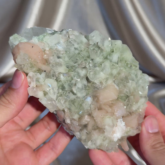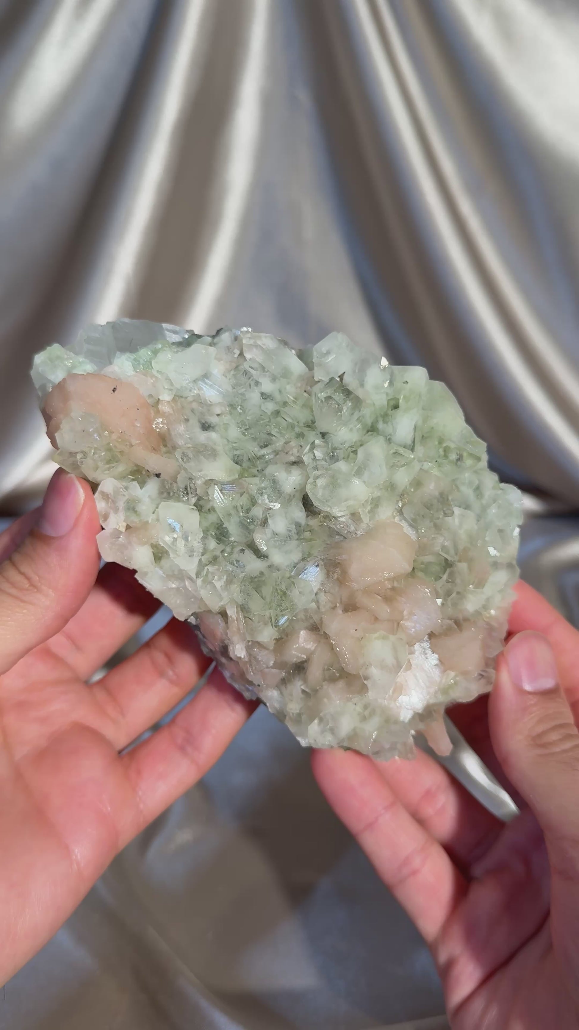 The ‘Ivy Thorn’ Pocket, named by me is distinguished by its striking green apophyllite crystals, noted for their exceptionally sharp terminations and glassy, transparent tips. Many crystals display a contrasting milky interior, creating an unusual two-tone effect that enhances their visual appeal. Several specimens also feature associated stilbite and calcite growth. This unique pocket highlights the fine crystal habits and remarkable paragenesis that make Indian apophyllite so highly regarded among collectors.