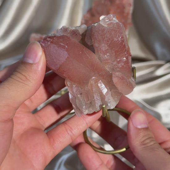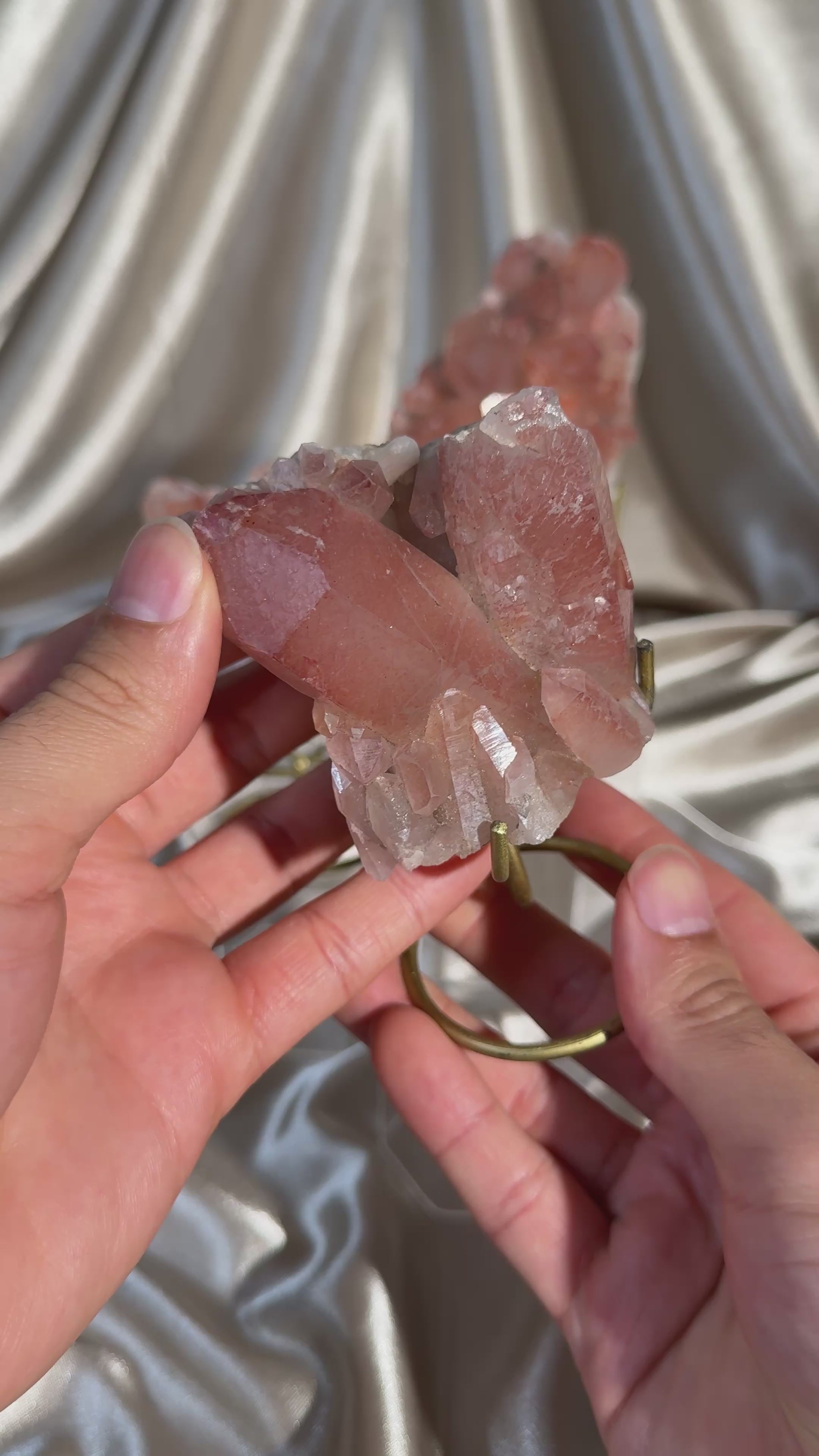 These beautiful quartz specimen display a pink hue created by inclusions of hematite, an iron oxide mineral. Known in the trade as Scarlet Lemurian Quartz. These are from the Minas Gerais region in Brazil.