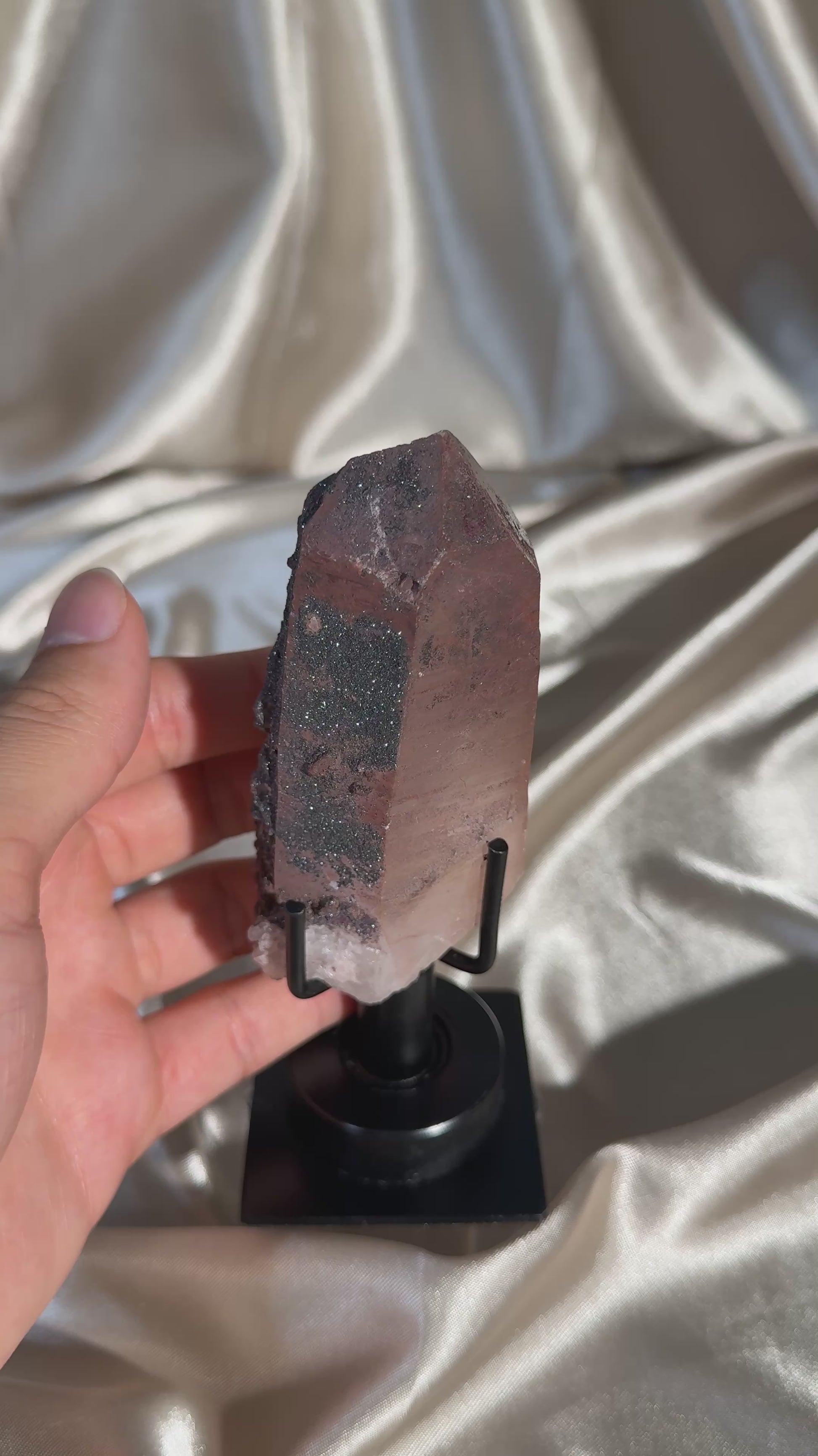 Red Dragon Quartz is a captivating, recently discovered variety of quartz sourced from regions such as Bahia, Minas Gerais, Amazonas. What sets it apart is its dramatic red-to-pink hues, resulting from hematite coatings and inclusions. This mineralization often creates gunmetal druzies and silvery or black hematite alongside the vibrant red tones.