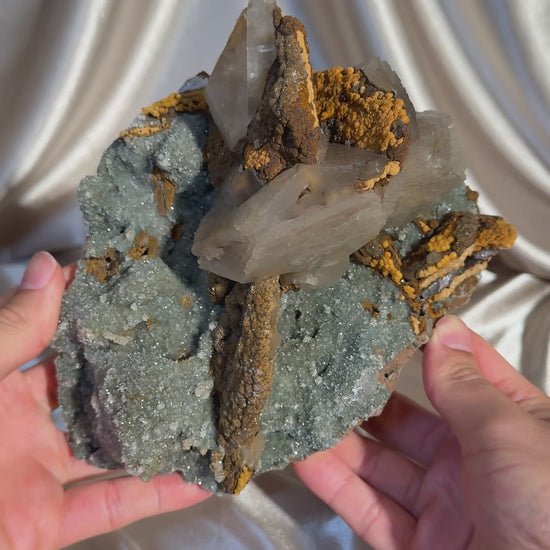 This material was trade names the Toadstool Pocket by me, this is an unusual and highly distinctive find. It features spherical aggregates of Gyrolite on a green chalcedony matrix, creating a striking visual contrast. In some specimens, there is a unique bladed calcite growth. This pocket has a similar appearance of forest fungi, inspiring the pocket’s name. This locality-specific combination makes it a noteworthy addition for collectors seeking uncommon Indian mineral associations.