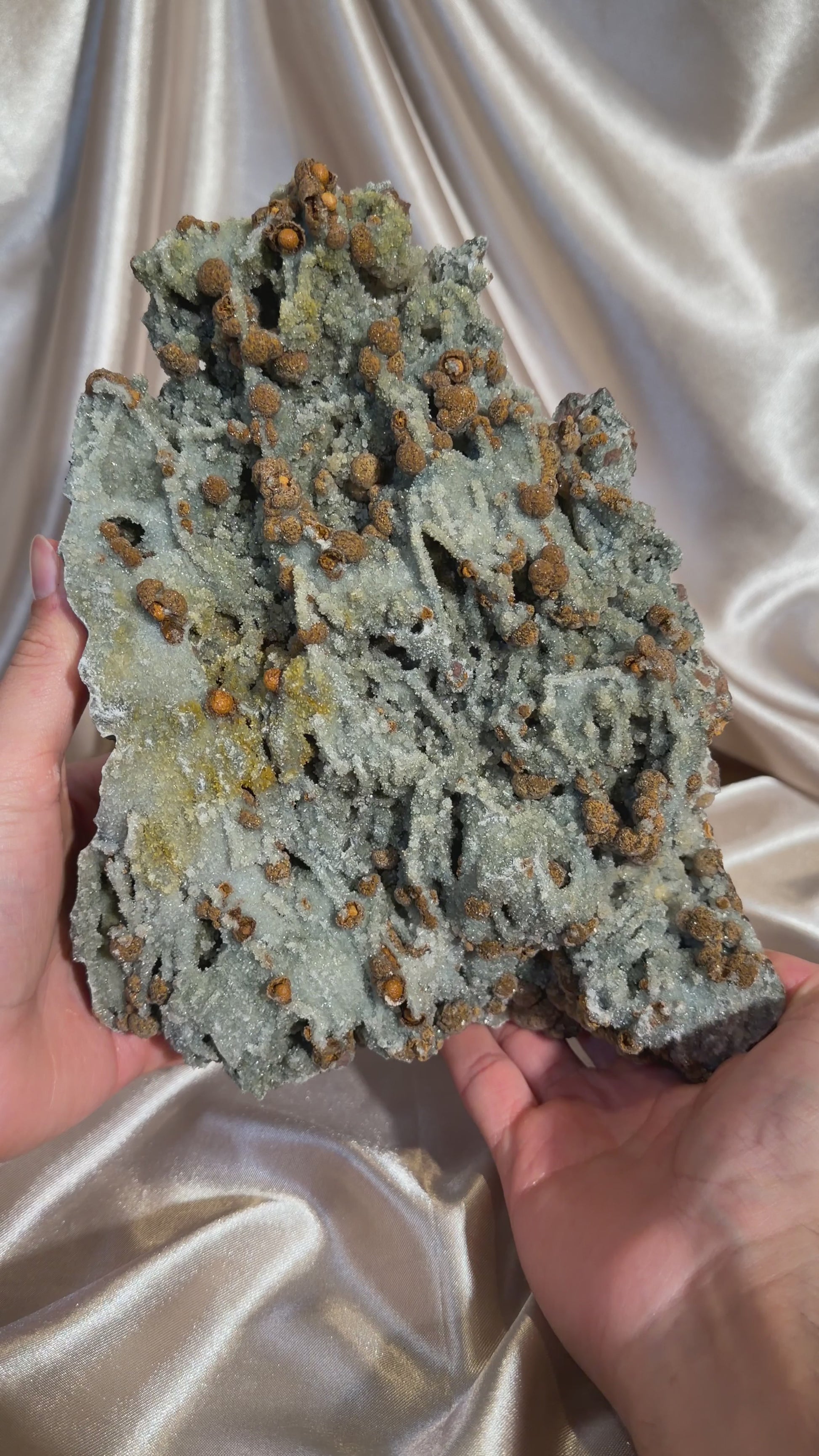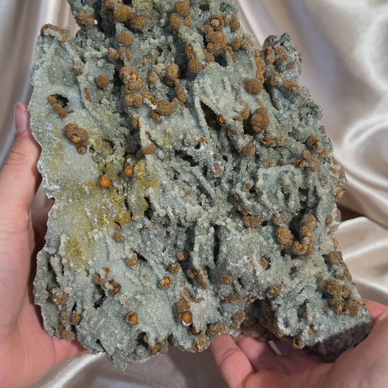 This material was trade names the Toadstool Pocket by me, this is an unusual and highly distinctive find. It features spherical aggregates of Gyrolite on a green chalcedony matrix, creating a striking visual contrast. In some specimens, there is a unique bladed calcite growth. This pocket has a similar appearance of forest fungi, inspiring the pocket’s name. This locality-specific combination makes it a noteworthy addition for collectors seeking uncommon Indian mineral associations.